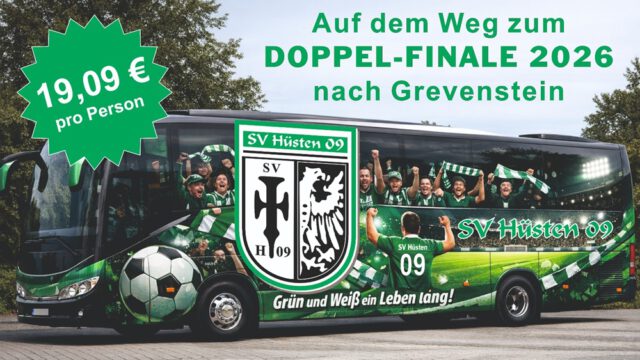 Der SV Hüsten 09 setzt am Donnerstag, den 14. Mai, zum Finaltag in Grevenstein einen Fanbus ein. Sowohl die Bezirksliga- als auch die A-Liga-Mannschaft haben sich in ihren Wettbewerben für das Endspiel des Kreispokals qualifiziert.
